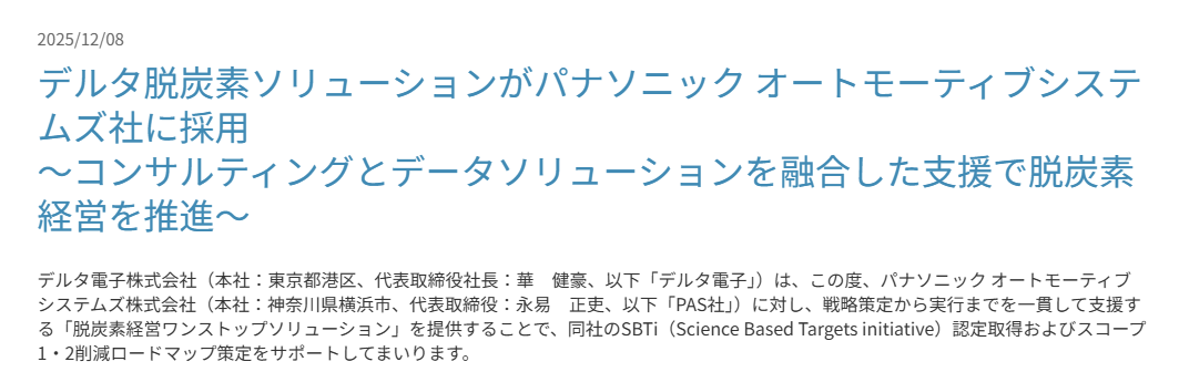 【脱炭素・SDGs・ESG】デルタ電子:PAS社へ脱炭素経営ワンストップソリューションを提供