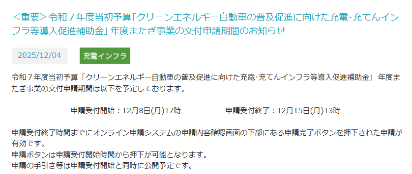 【補助金】次世代自動車振興センター:充電・充てんインフラ補助金の申請期間を公表