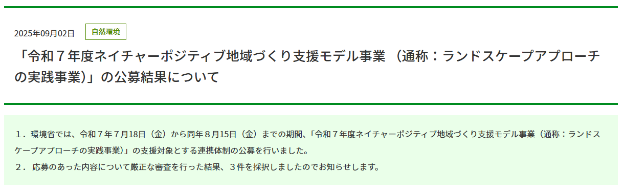 【政策】環境省:ネイチャーポジティブ支援事業で3件採択