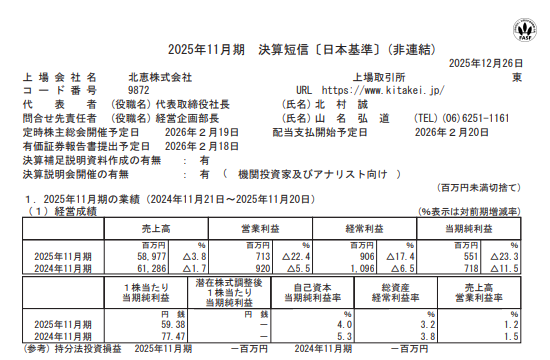 【決算】北恵:2025年11月期決算、減収減益も環境配慮型と工事領域を強化