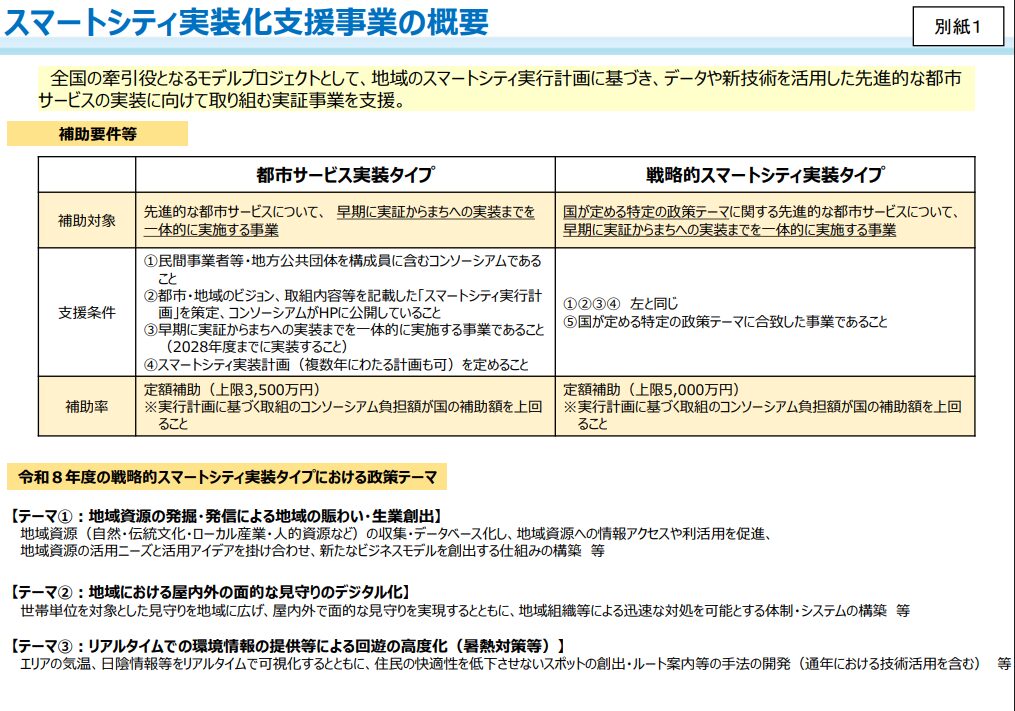 【政策】国交省:令和8年度スマートシティ実装支援を公募、都市サービス導入を後押し