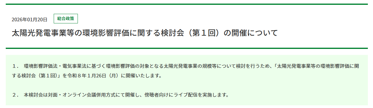 【政策】環境省:太陽光発電の環境影響評価見直しへ検討会開催、対象規模を議論