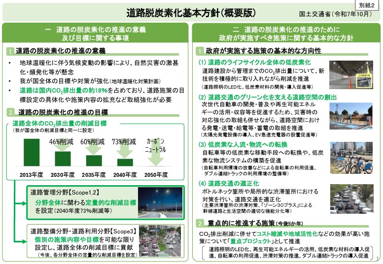 【政策】国土交通省:道路脱炭素化へ新枠組み始動 基本方針公表と計画策定支援を開始