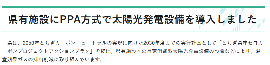 【脱炭素・SDGs・ESG】栃木県:県有施設にPPA方式で太陽光導入 年間35万kWh発電でCO2削減へ