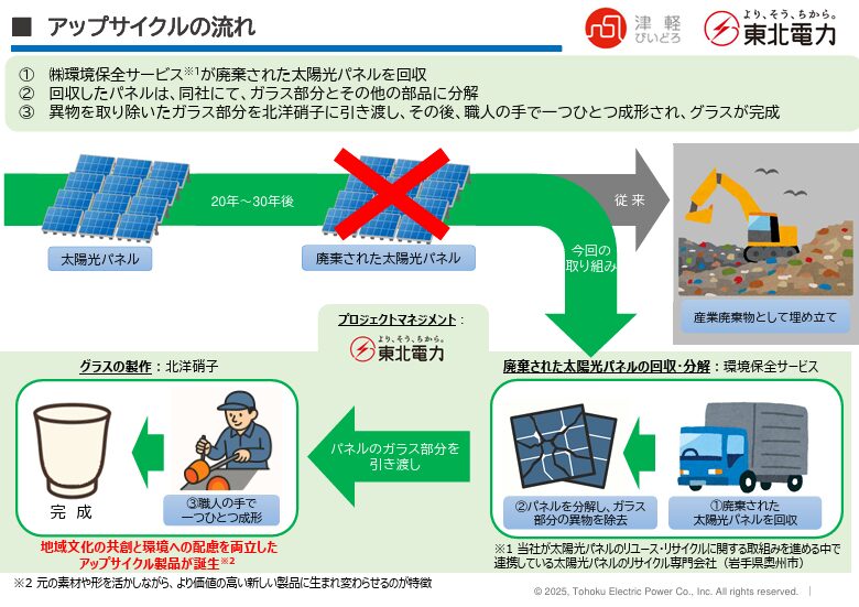 【太陽光発電】東北電力:廃棄太陽光パネルを再生し「津軽びいどろ」に活用