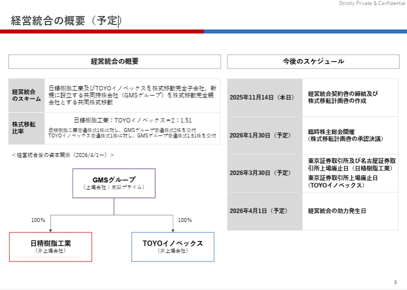 【提携・M&A・新会社】日精樹脂工業:TOYOイノベックスと共同持株会社方式で経営統合へ