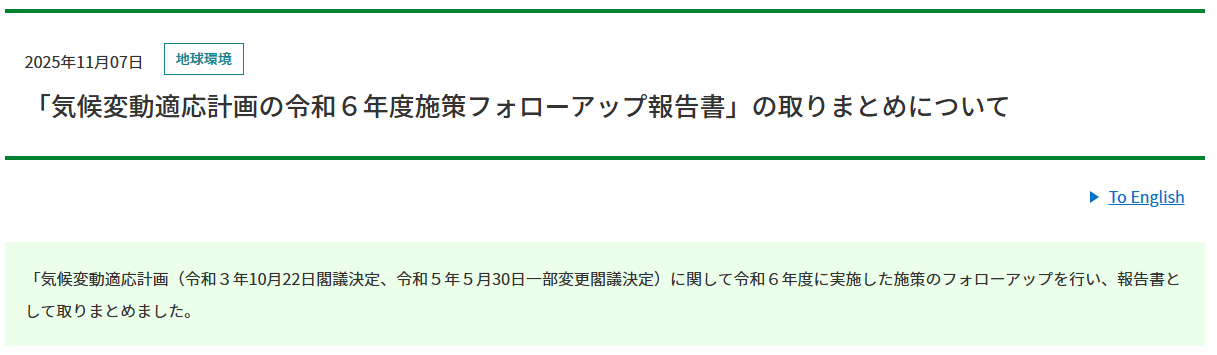 【政策】環境省:「気候変動適応計画」令和6年度施策フォローアップ報告書を公表
