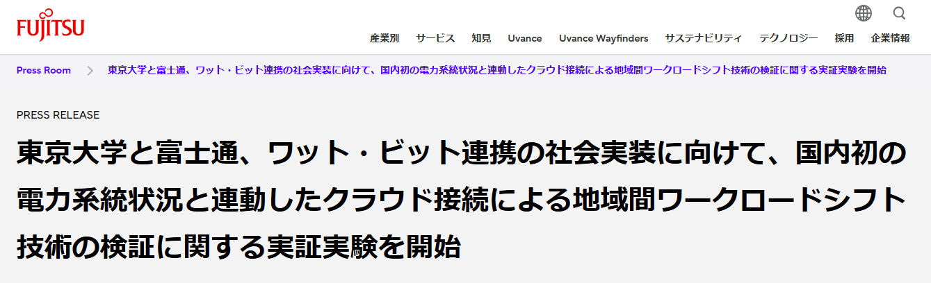 【研究】東京大学・富士通:電力系統と連動した地域間ワークロードシフトを実証