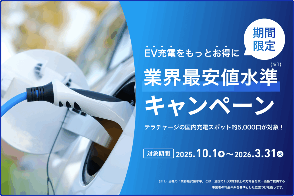 【次世代自動車・充電器】Terra Charge:EV充電料金を業界最安値水準に引き下げ、QR決済対応で利便性向上