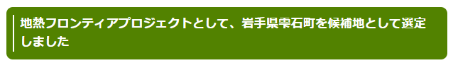 【政策】資源エネルギー庁・JOGMEC:地熱フロンティア候補地に岩手県雫石町を選定