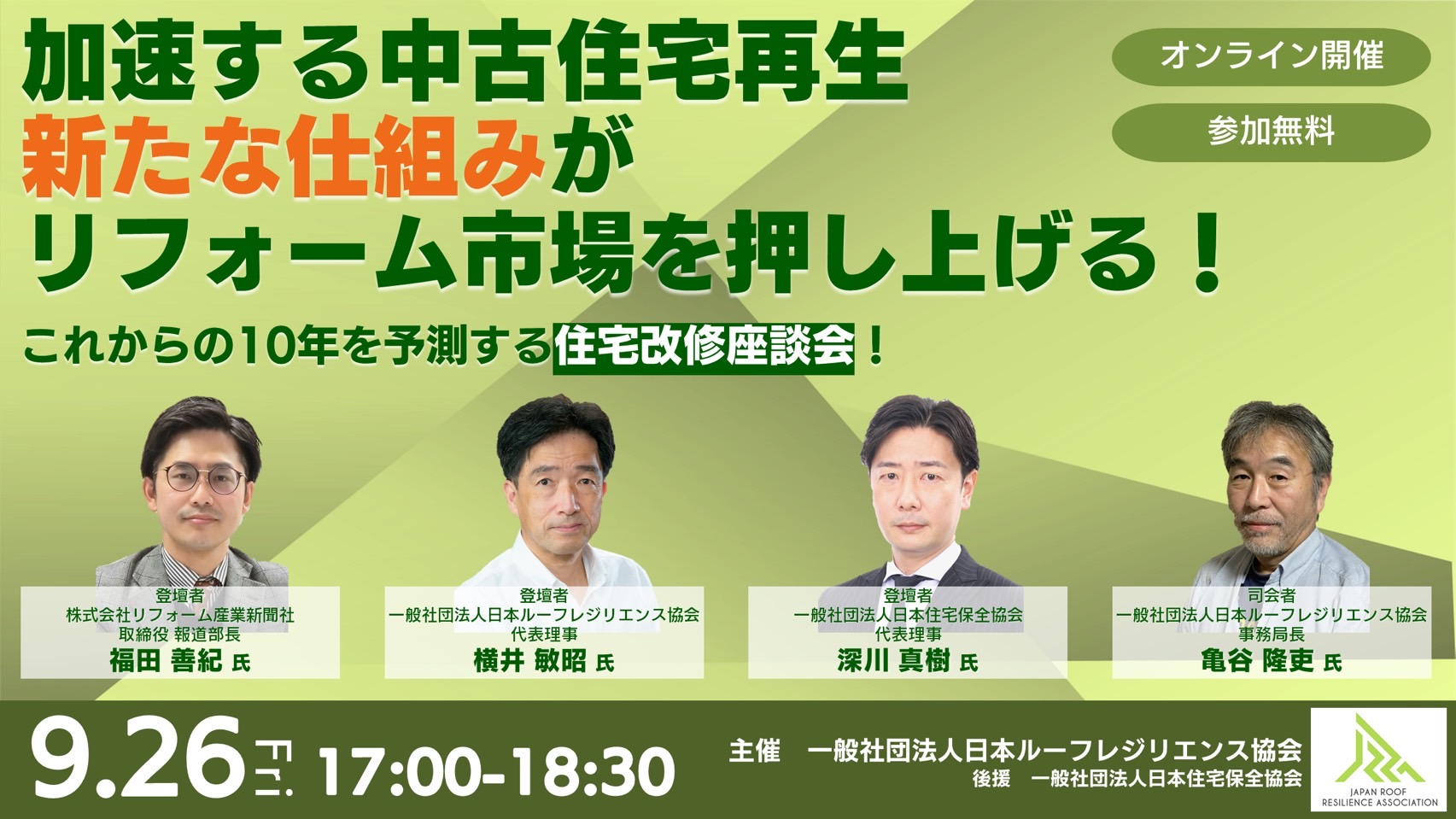 【ゼミ】日本ルーフレジリエンス協会:これからの10年を予測する住宅改修座談会 開催